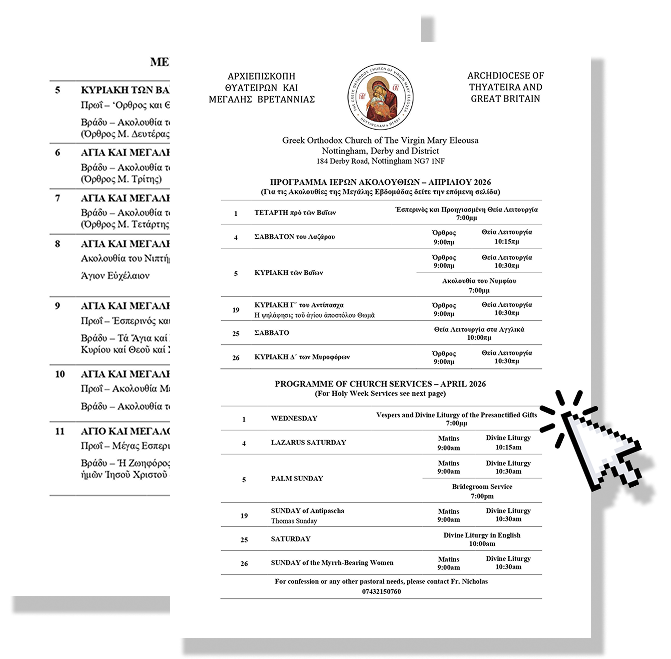 We are an Orthodox Parish belonging to the Archdiocese of Thyateira and Great Britain under the Ecumenical Patriarch of Constantinople. Established in 1974, our parish was founded to serve the spiritual needs of Orthodox faithful in Nottingham, Derby and the surrounding areas.